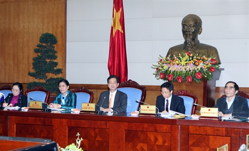 | Le Premier ministre Nguyên Tân Dung (Centre) lors de la séance de travail avec l'Union des femmes du Vietnam, le |
