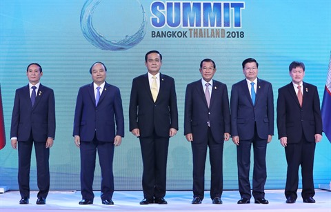 | Le Premier ministre vietnamien Nguyên Xuân Phuc (2e à gauche) et les chefs des délégations à l'ACMECS-8. |