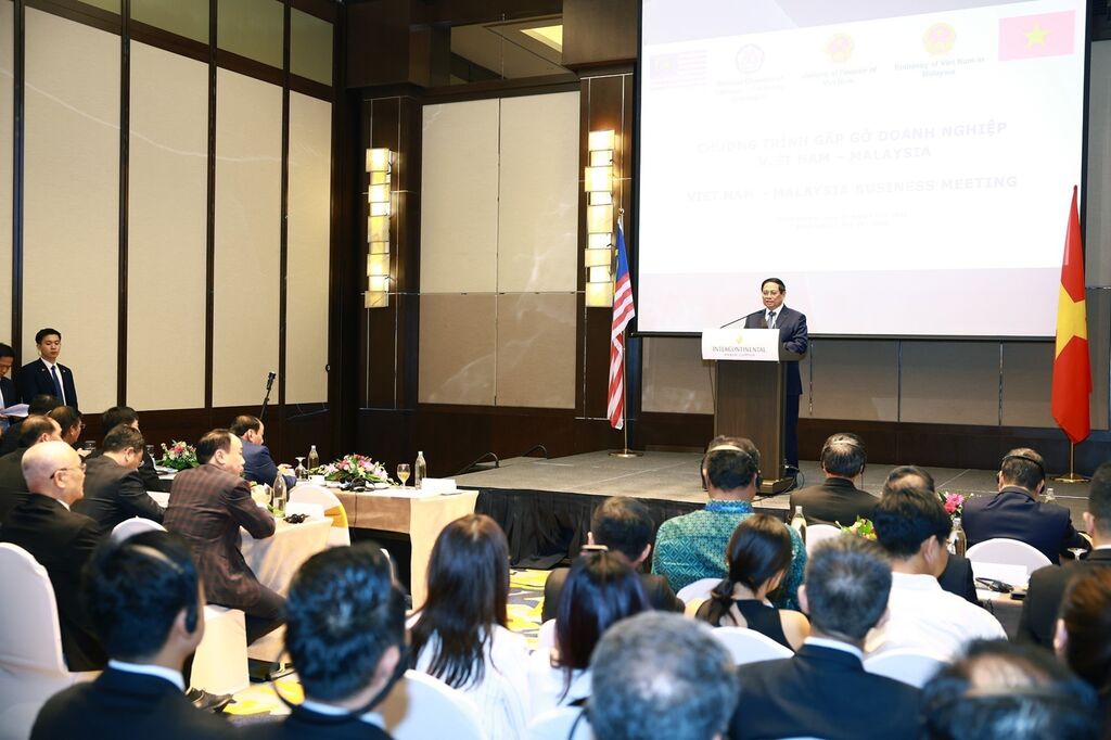 | Le Premier ministre Pham Minh Chinh prend la parole à une réunion d'affaires Vietnam - Malaisie. |