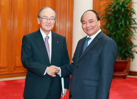 | Le Premier ministre Nguyên Xuân Phuc (droite) et le président de la JCCI, Akio Mimura, le 23 janvier à Hanoï. |