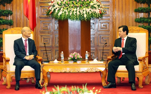 | Le Premier ministre Nguyên Tân Dung (droite) et le vice-président du groupe sud-coréen Samsung, Yeon Joo Jung, le 30 septembre à Hanoi. |