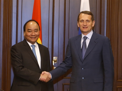 | Le Premier ministre vietnamien Nguyên Xuân Phuc (gauche) et le président de la Douma d’État russe Sergey Naryshkin, le 17 mai à Moscou. |