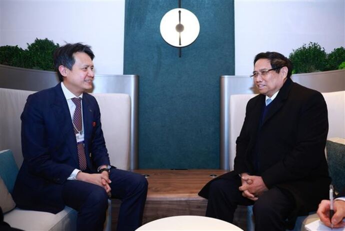 | Le Premier ministre Pham Minh Chinh (gauche) et son homologue du Liechtenstein, Daniel Risch, le 22 janvier à Davos. |