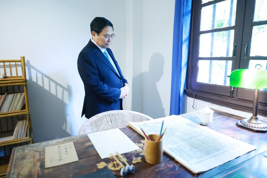 | Le Premier ministre Pham Minh Chinh visite la pièce servant à la fois d'espace de vie et de travail au Président Hô Chi Minh pendant son séjour en Chine de 1939 à 1940. |