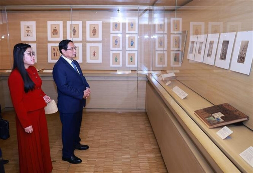 Au cours de sa visite, le chef du gouvernement vietnamien a parcouru les salles présentant des objets du Vietnam et des pièces témoignant des liens historiques entre les deux pays.