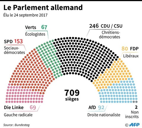 Et l'ascension de l'Alternative pour l'Allemagne (AfD), qui a promis de "faire la chasse" à Mme Merkel, pourrait encore s'amplifier en cas de nouvelles élections. Elle obtient 14% des intentions de vote, selon un sondage de l'institut INSA, contre 12,6% en septembre.