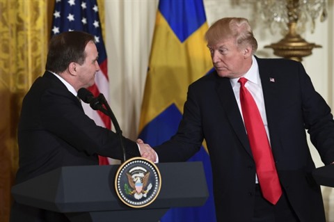 | Donald Trump (droite) a mené mardi après-midi 6 mars une conférence de presse conjointe avec le Premier ministre suédois Stefan Löfven. |