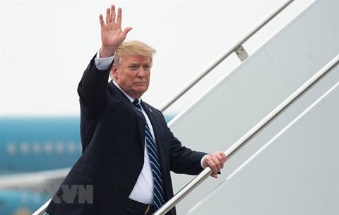 | Le président américain Donald Trump monte à bord d'Air Force One, le 28 février à l’aéroport international de Nôi Bài, à Hanoï. |
