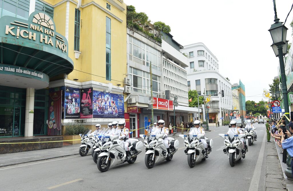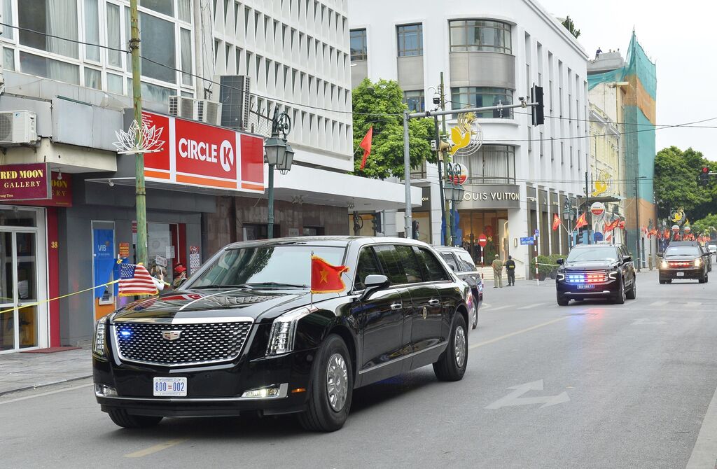 | Passage de l'impressionnant convoi du président américain Joe Biden dans la rue Tràng Tiên, à Hanoï, le 11 septembre. |
