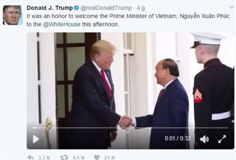 Auparavant, lors de leur entretien, Donald Trump et Nguyên Xuân Phuc ont insisté sur les opportunités pour renforcer les relations entre le Vietnam et les États-Unis. Ils ont convenu d’intensifier le partenariat intégral bilatéral sur la base de la Charte des Nations Unies et du droit international, du respect de la souveraineté, de l’intégrité territoriale mais aussi du régime politique propre à chacun des deux pays. Ils ont décidé de multiplier les échanges de délégations, et les contacts de haut niveau pour discuter des mesures visant à cimenter le partenariat intégral vietnamo-américain. Ils se sont mis d’accord pour mettre à profit les mécanismes de coopération existants et en envisager de nouveaux.