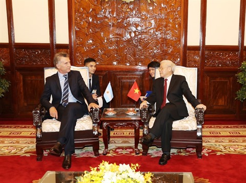 Dans le cadre de cette visite, le président argentin Mauricio Macri a rencontré Nguyên Phu Trong, le Premier ministre Nguyên Xuân Phuc, la présidente de l’Assemblée nationale Nguyên Thi Kim Ngân. Il a assisté au forum d’affaires Vietnam - Argentine, accordé une interview à l’Agence Vietnamienne d’Information (VNA). Le président argentin et sa suite sont allés fleurir le mémorial des héros morts pour la Patrie et rendre hommage au Président Hô Chi Minh dans son mausolée à Hanoï.