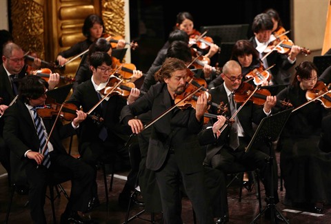 | Le violoniste allemand Christian Tetzlaff (centre) se produit lors du concert. |