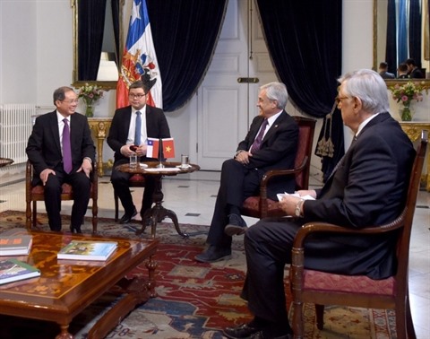 Ce dernier a apprécié les réalisations impressionnantes en matière de développement économique du Vietnam lors de ces dernières années. Il s'est rappelé les bons souvenirs de sa visite officielle au Vietnam en mars 2012 en tant que président du Chili pendant le mandat 2010-2014.