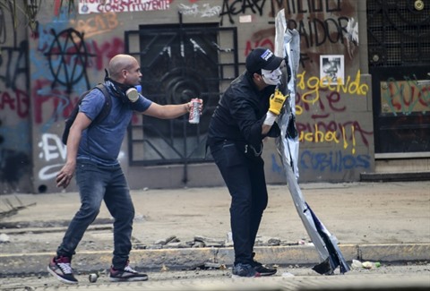 | Des manifestants affrontent la police anti-émeutes à Santiago, le 5 novembre. Photo : AFP/VNA/CVN |