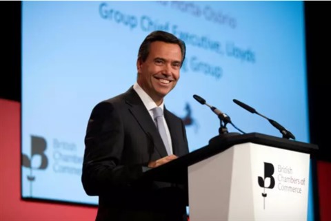 | António Horta-Osório, qui va quitter la présidence du Credit Suisse, lorsqu'il était à la tête de la banque britannique Lloyd's, à Londres le 10 février 2015. |
