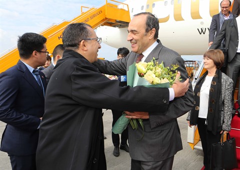 | Le président de la Chambre des représentants du Maroc, Habib El Malki (droite), est arrivé le 16 décembre à l'aéroport de Nôi Bài. |