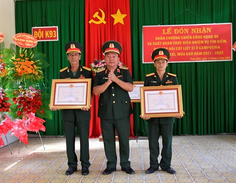 Par délégation du président de la République, le général de brigade Hô Minh Phuong, chef adjoint politique de la IXe Région militaire, a remis l’Ordre du mérite militaire de 3e classe à l’équipe de recherche K93, au colonel Pham Quang Trung et le capitaine Huynh Van Kich.