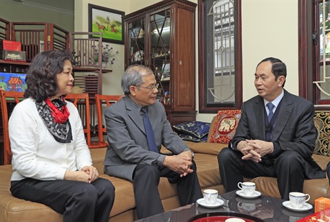 Le même jour, le président Trân Dai Quang a présenté ses vœux au Professeur et héros du travail Vu Khiêu.