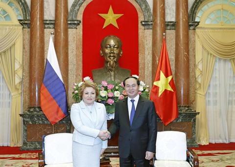 Lors d'une rencontre avec la présidente du Conseil de la Fédération de Russie, Valentina Ivanovna Matviyenko, à Hanoï, le 21 février, le président de la République Trân Dai Quang a exprimé son espoir que les deux pays connaîtront des avancées dans la coopération économique et commerciale en 2017, suggérant que les deux parties arriveront rapidement à un consensus sur les domaines prioritaires de coopération pour l'année.