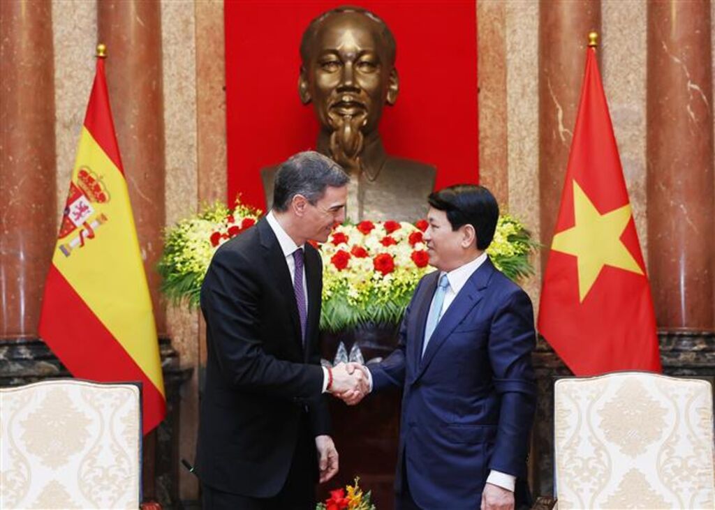 De son côté, le Premier ministre espagnol Pedro Sánchez, a affirmé que le Vietnam est l'un des partenaires prioritaires de l'Espagne en Asie du Sud-Est. Il a exprimé sa volonté de porter les relations bilatérales au niveau de Partenariat stratégique intégral et a également transmis les salutations du roi d'Espagne au président Luong Cuong.
