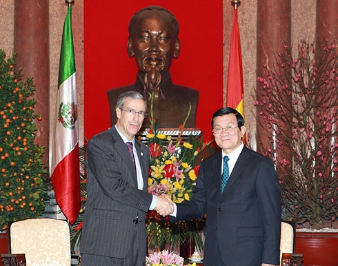 | Le président de la République, Truong Tân Sang (à droite), reçoit le président du Sénat mexicain Jose Gonzalez Morfin, le 13 janvier à Hanoi. |