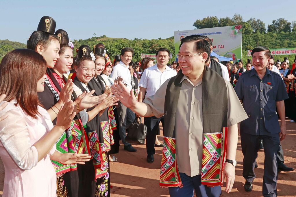 | Le président de l'Assemblée nationale Vuong Dinh Huê visite le 21 octobre la zone de culture du café dans le village de Hoàng Van Thu, province montagneuse de Son La (Nord). |