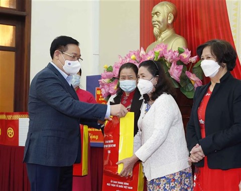 À cette occasion, le président de l'AN Vuong Dinh Huê et le vice-président permanent de l'AN Trân Thanh Mân ont offert des cadeaux au Front de la Patrie du quartier de Quan Thanh, à l'Association des vétérans et aux familles exemplaires de ce quartier.