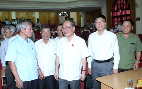 | Le président de l’AN Nguyên Sinh Hùng et la délégation de députés de la province de Hà Tinh (Centre) ont rencontré le 16 mai des électeurs locaux. |
