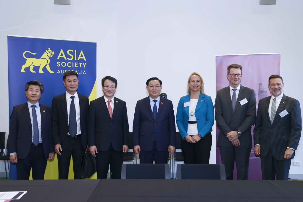 | Le président de l’AN du Vietnam, Vuong Dinh Huê (centre), avec des délégués au Forum de coopération économique Vietnam - Australie, à Melbourne. |