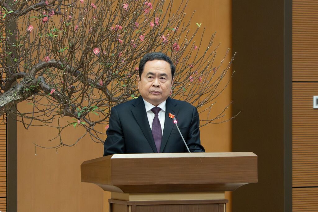 | Le président de l'AN, Trân Thanh Mân, prenant la parole à la cérémonie, le 2 février à Hanoï. |