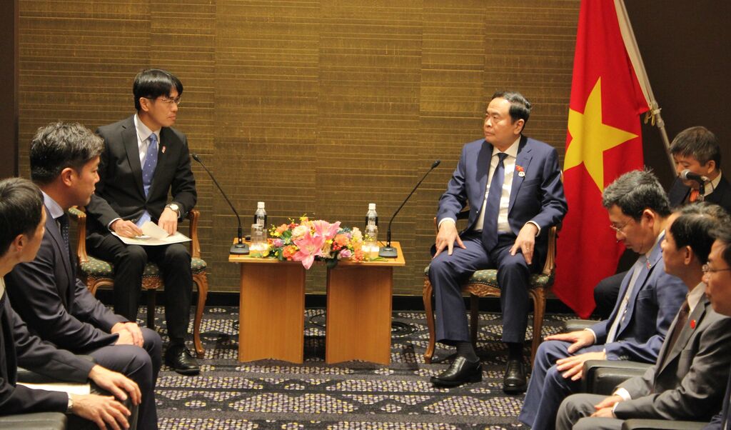 | Le président de l'Assemblée nationale du Vietnam, Trân Thanh Mân (droite), a reçu le 4 décembre à Tokyo le gouverneur de la préfecture de Nara, Yamashita Makoto. |
