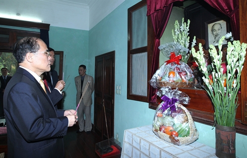 | Nguyên Sinh Hùng rend hommage au Président Hô Chi Minh le 18 janvier. |