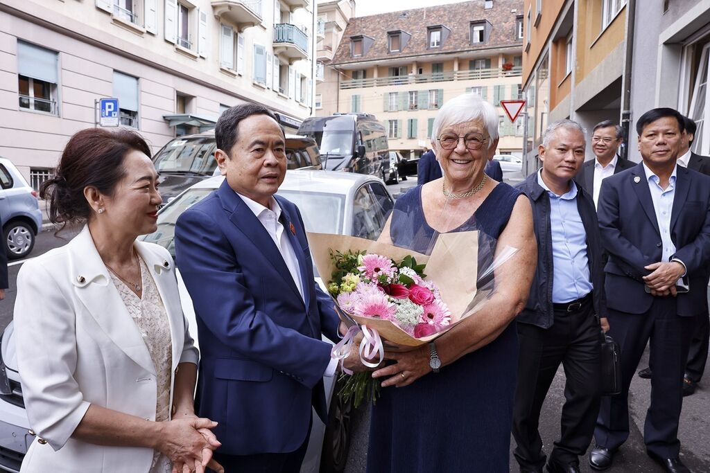 | Le président de l’Assemblée nationale, Trân Thanh Mân, et son épouse, Nguyên Thi Thanh Nga, ont rendu visite à la famille de Jacques Savary, à Vevey. |