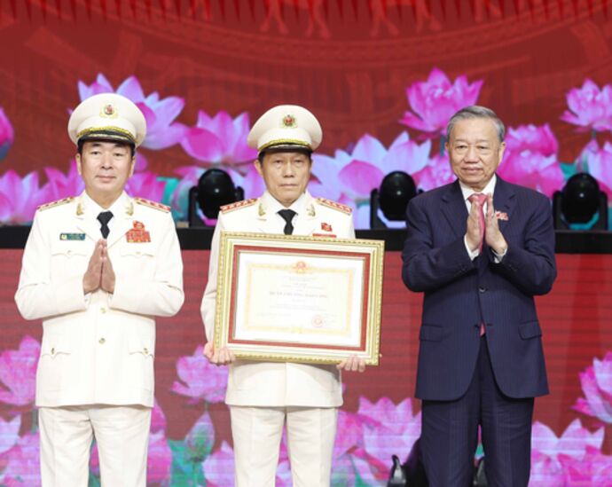 La direction du Parti, de l’Assemblée nationale et du gouvernement a toujours la conviction qu’avec 80 ans de tradition héroïque et glorieuse, de solidarité et d’unité, la Police populaire accomplira brillamment toutes les tâches qui lui sont confiées, sera digne d’être la force armée essentielle, fiable et absolument loyale du Parti, de l’État et du Peuple, et contribuera encore davantage à l’œuvre du Renouveau, à l’accélération de l’industrialisation et de la modernisation, menant le pays vers un développement rapide et durable dans l’ère du progrès de la nation, aux côtés des grandes puissances des cinq continents, comme le souhaitait de son vivant le Président Hô Chi Minh.