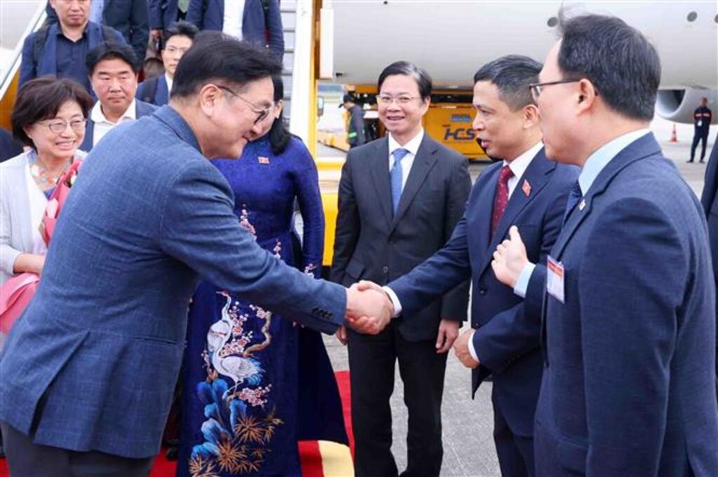 La délégation a été accueillie à l'aéroport international de Nôi Bài par Nguyên Thanh Hai, présidente de la Commission des sciences, des technologies et de l'environnement et présidente du Groupe des parlementaires d'amitié Vietnam - République de Corée ; l'ambassadeur sud-coréen au Vietnam, Choi Young Sam...