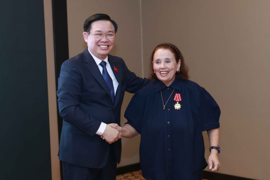 | Le président de l'AN, Vuong Dinh Huê, et la présidente de l'Institut culturel argentino-vietnamien Poldi María Sosa. |