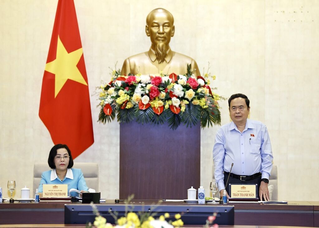 | Le président de l'Assemblée nationale Trân Thanh Mân (debout) travaille avec des commissions de l'Assemblée nationale. |