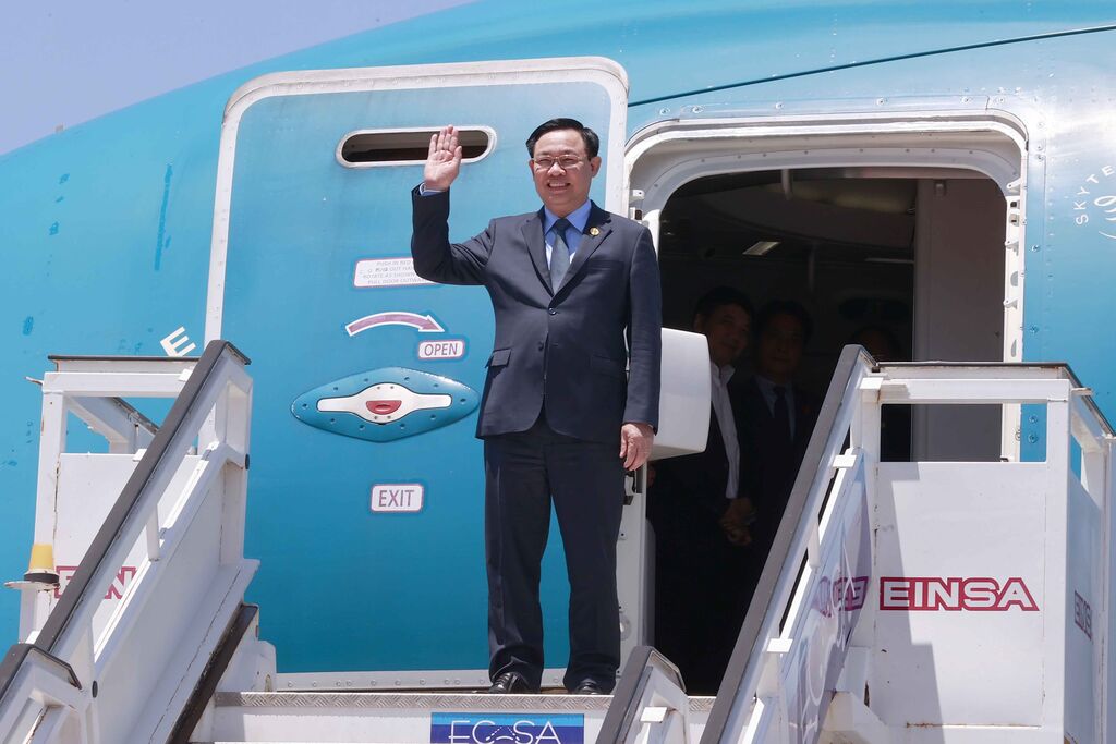 | Le président de l'Assemblée nationale Vuong Dinh Huê arrive le 18 avril à l'aéroport José Martí, à Cuba. |
