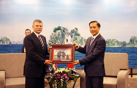 | Le secrétaire adjoint du comité du Parti pour la province de Quang Ninh, Vu Hông Thanh (droite), et le président de l'AN de la Hongrie, Laszlo Kover le 10 novembre à Quang Ninh. |