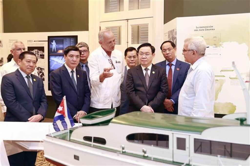 | Le président de l’AN du Vietnam, Vuong Dinh Huê (droite), visite le centre Fidel Castro Ruz, à Cuba, le 19 avril. |