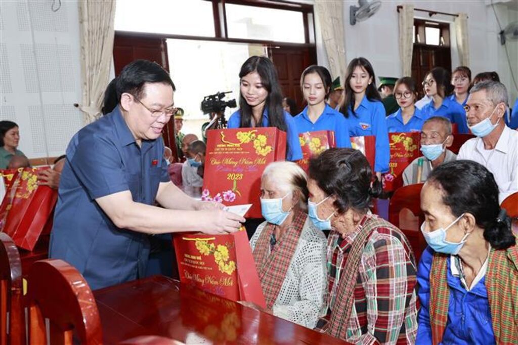 | Le président de l’Assemblée nationale remet des cadeaux du Têt à des pauvres d'An Giang. |