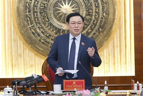 | Le président de l'Assemblée nationale Vuong Dinh Huê lors d'une séance de travail à Thanh Hoa (Centre), le 19 mars. |