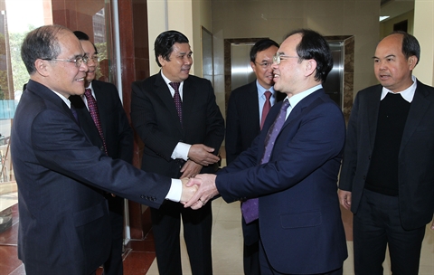 | Le président de l’Assemblée nationale Nguyên Sinh Hùng (gauche), lors de sa séance de travail avec l’audit d’État, le 16 janvier à Hanoi. |
