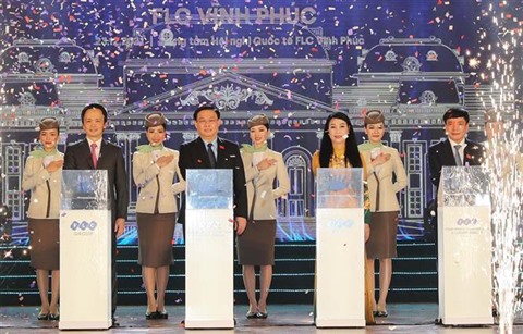 | Le président de l’AN Vuong Dinh Huê (2e, gauche) lors de la cérémonie d'inauguration d'un complexe d’hôtel FLC Vinh Phuc, le 23 décembre. |