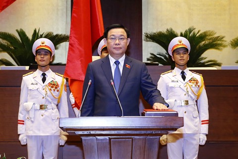 | Le président de l’Assemblée nationale Vuong Dinh Huê a prêté serment sous le drapeau rouge à l’étoile d’or sacré de la Patrie. |