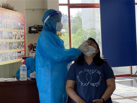 | Prélever l'échantillon pour le test de dépistage du COVID-19 à Ninh Thuân (Centre). |