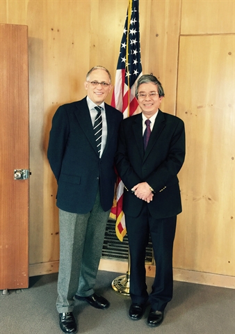 | L'ambassadeur du Vietnam aux États-Unis, Pham Quang Vinh (droite), et le président de la Banque d'import export des États-Unis (Eximbank), Fred Hochberg, le 13 mars à Washington. |