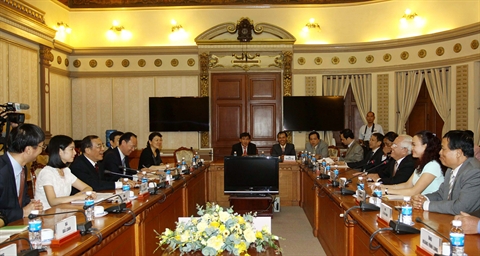 | Séance de travail entre le Comité populaire de Hô Chi Minh-Ville et la Commission de la discipline et de l'inspection du Parti communiste chinois, le 14 juillet dans la mégapole du Sud. |