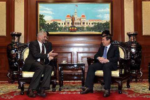 | Le président du Comité populaire de Hô Chi Minh-Ville, Nguyên Thành Phong, reçoit le 4 août le consul général du Canada dans la mégapole du Sud, Richard Bale. |