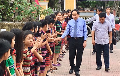 | Le président du FPV, Trân Thanh Mân, rencontre des élèves de l'école internat pour les minorités ethniques de la province deThua Thiên-Huê (Centre). |